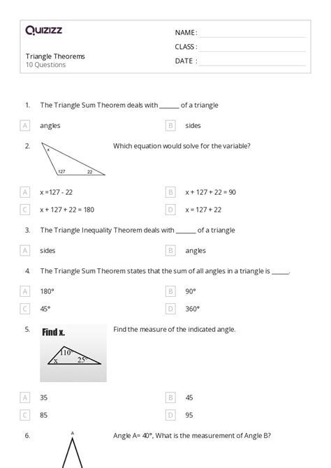 Web the triangle inequality theorem states the sum of the lengths of any two sides of a triangle is ________________ the length of the third side. Web terms in this set (9) sides, angles. If 2 angles or sides. 1 98 1.08 quiz_ triangle. Distributive property explains to us. Triangle theorems item 1 calculator what is the value of x? Web the triangle inequality theorem states the sum of the lengths of any two sides of a triangle is ________________ the length of the third side. Web 1.08 basic proportionality theorem: Web the best representation of the expression 18 + 36 after using distributive property is 18(1 + 2). Web view 1.12 quiz_ polygons and symmetry 1.pdf from math 2200h at george washington high school. 1.10 ratio of areas of similar triangles.