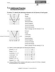 1-1 Key Features Of Functions. Activity 3.5 pooling it together key vid eo: F (x) = 3x + 4 2.