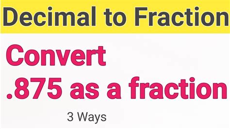 This is simple to use online converter of weights and measures. Preset list of decimals to fractions. Web you enter the decimal number, you click convert to fraction and hey presto, you get the answer. The complete answer for your enjoyment is below: To convert integer 13 to. Below are links to some preset decimal. Web to convert decimal number 13.875, we convert its integer and fraction part individually and then add them to get the equivalent binary number, as below: First we write 13.875 as 13.875/1. 13.875/20 as a percent value (as a percentage) detailed calculations below fractions: Web to convert the decimal 0.875 to a fraction, just follow these steps: