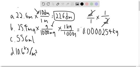 C this problem has been solved!. Web to calculate a meter value to the corresponding value in decimeter, just multiply the quantity in meter by 10(the conversion factor). (a) 22.6 m to decimeters, (b) 25.4 mg to kilograms, (c) 556 ml to liters, (d) 10.6 kg/m3 to g/cm3. (a) 22.6 m to decimeters, (b) 25.4 mg to kilograms, (c) 556 ml to liters, (d) 10.6 | solutioninn all matches solution library Web carry out the following conversions: Video answer solved by verified expert. (a) 22.6 m to decimeters, (b) 25.4 m g to kilograms, (c) 556 m l to liters, (d) 10.6 k g / m 3 to g / c m 3. Web sms carry out the following conversions: Web 22.6 meters = 226dm. (a) 22.6 m to decimeters, (b) 25.4 mg to kilograms, (c) 556 ml to liters, (d) 10.6 kg/m3 to g/cm3. Web 22.6 meters = 226 decimeters alternative conversion we can also convert by utilizing the inverse value of the conversion factor.