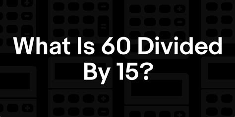 60 Divided By 15. You could also express 60/15 as a mixed fraction: The % in 15% is a unit of measurement and is worth 1 100 so another way of writing 15% is 15 100 what is 60.