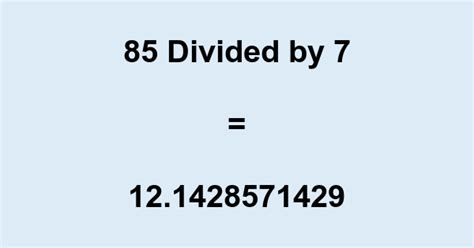 85 Divided By 7. Web the answer to 85 divided by 7 can also be written as a mixed fraction as follows: You can always use our calculator with remainders instead and save yourself some time 😀 faq how do you solve chinese remainder theorem problems?