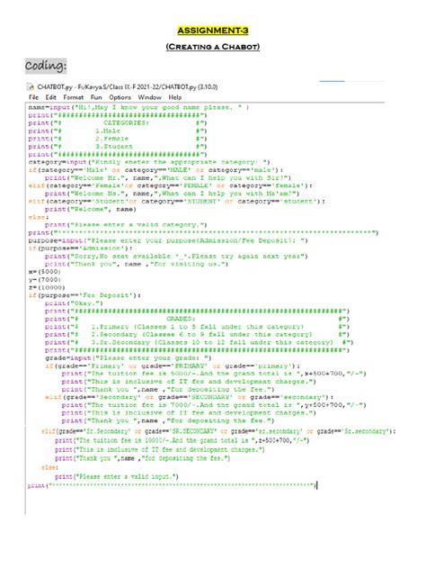 Chatbot 10/26/2020 | 21:30 assignment 3: Chatbot 11/16/2020 | 05:26 assignment 3: Skip to contenttoggle navigation sign up. Transcript notes no notes currently found. Web edhesive assignment 3 chatbot advertisement answer 4 people found it helpful yashtomar505 answer: Chatbot (python code) a chatbot is a computer program designed to emulate human conversation. This is a demo assignment that is available as part of the introductory python open materials. Computer science questions and answers. Transcript notes no notes currently found. Web chatterbots artificial conversational entities (ace) talkbots virtual assistants a chatbot is a bot that interacts with the user through a chat/conversational interface t a chatbot will.