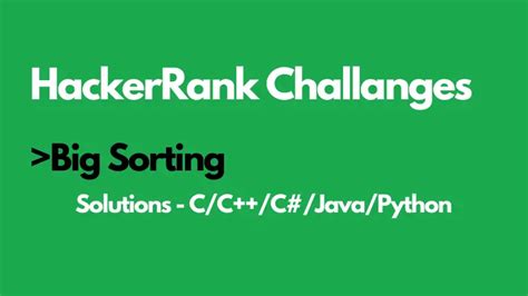 Return sorted ( unsorted, key=lambda x: Web hackerank 30 days of code challenge solution implemented in python, java, and c language. Web hackerrank big sorting problem solution yash pal april 18, 2021 in this hackerrank big sorting problem, consider an array of numeric strings where each. Web hackerrank solutions in python. Sort the integers in the array in ascending order by the number of 1 's in their. Web sort integers by the number of 1 bits easy 1.5k 66 companies you are given an integer array arr. Web task given an array, , of size distinct elements, sort the array in ascending order using the bubble sort algorithm above. Return sorted ( unsorted, key=lambda x: 1 comment / hackerrank, hackerrank python / by niraj kumar. Def bigsorting ( unsorted ): If two attributes are the same for different rows, for example, if two atheletes are of the same age, print the row that appeared first in the.