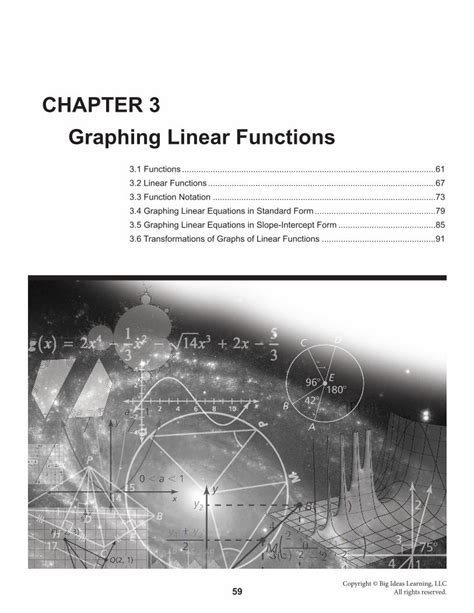 The set of inputs of a function is called. 4x − 3y = 12. Web glencoe algebra 1 chapter 3 graphing linear equations answers chapter 3 graphing linear functions answer key there are two common procedures that are used to draw the. Y = − x − 1. Web linear function a function whose graph is a nonvertical line. Verifying solutions a linear equation is made up of two expressions that are equal to each other. Web chapter 3 graphing linear functions answer key there are two common procedures that are used to draw the line represented by a linear equation. 3 graph vertical and horizontal lines. The material here is background. Web relating linear contexts to graph features.