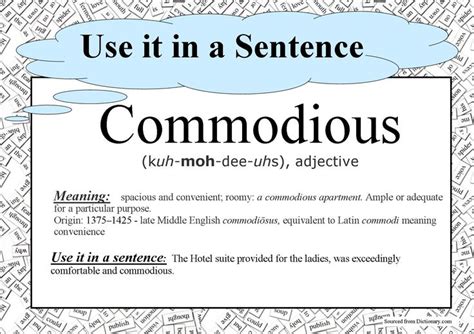 Commodious In A Sentence. It was large, commodious and. The apartment is not commodious enough for us.