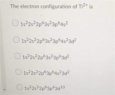 Electron Configuration Of Ti2+. Which is the ground state electron configuration of ti2+? Now, it's important to keep in mind that this notation for the electron.