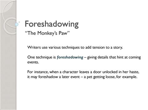 Foreshadowing In Monkey's Paw. Major morris explains the dire outcome of using the. Web foreshadowing is one of the biggest ways that expresses suspense in the story.
