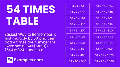 Web the first step is to note down the number 54. 1, 2, 3, 6…7, 14, 21, 42. Web multiples of 54 are the numbers obtained by multiplying 54 with other numbers. Web enter any number into this free calculator. It doesn ’ t just give you the answer the way your calculator would, but will. The first 5 numbers in the multiplication table of 54 are 54,. The answer is given below : Press on a column button and a row button below to get multiplication result: Check the verbose mode checkbox for an. Since there are no whole numbers between 6 and 7, all of. Hence, the multiples of 54 are infinite.