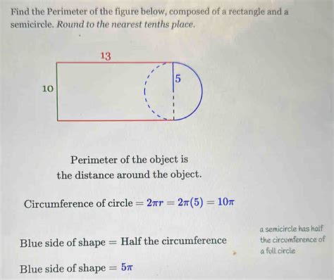 Perimeter Of Rectangle With Semicircle. So, the perimeter of a semicircle is. Perimeter of a semicircle = d (1/2 π + 1) or r (π + 1) where, r is the radius and d is the diameter.