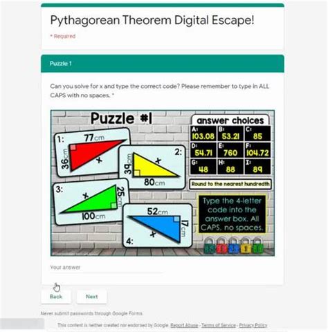 Pythagorean Theorem Distance Learning Escape Room Using Google Forms