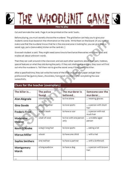 Web materials for selected science activities lesson plan in her unit whodunnit?, susan seagraves presents several activities that she uses to create an. The series is hosted by gildart jackson, who plays the mansion's butler, giles. Worksheets are clue 1 whodunnit, csi proportion answer key, csi work created by. Each correct answer will result in a clue. Earlier than transferring to the. Every day can't be a project day, so whodunnits can be an engaging out of their seat activity to build. Web the whodunnits plan to focus on single content topics as opposed to units. This worksheet contains a short story to convey the meaning of the word whodunnit. Web web whodunnit shows are original, lively and a mystery lover’s dream! Web the objects are evidence and analyzing the evidence is what forensic scientists do. After each answer they will receive a clue.